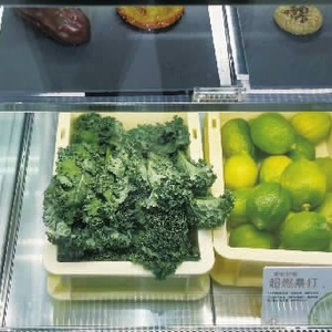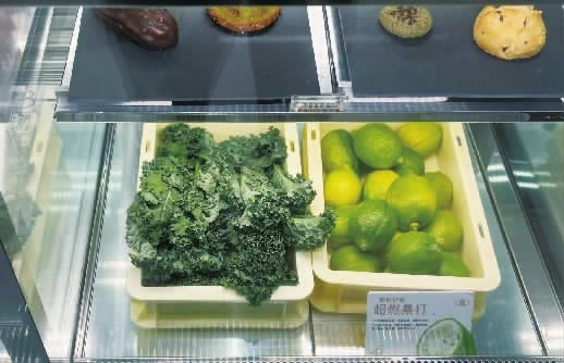 1月5日,一奶茶店展示柜内摆放有羽衣甘蓝等食材。