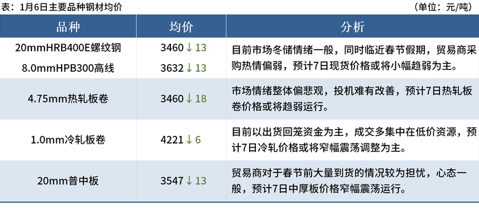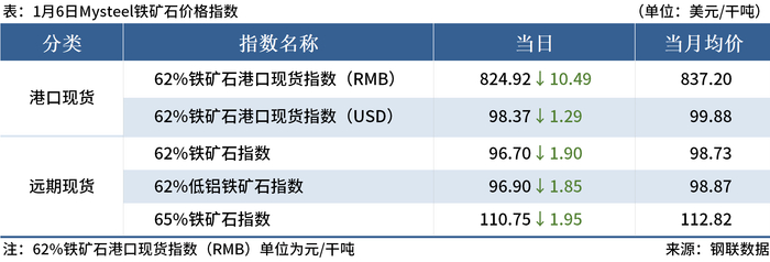 ◎1月6日,全国主港铁矿石成交103.00万吨,环比减28.8%;237家主流贸易商建筑钢材成交9.56万吨,环比增2.3%。
