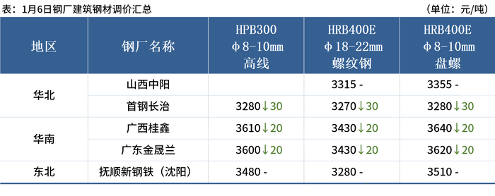 ◎1月6日,午后唐山迁安普方坯资源出厂含税下调20元/吨,报2990元/吨。