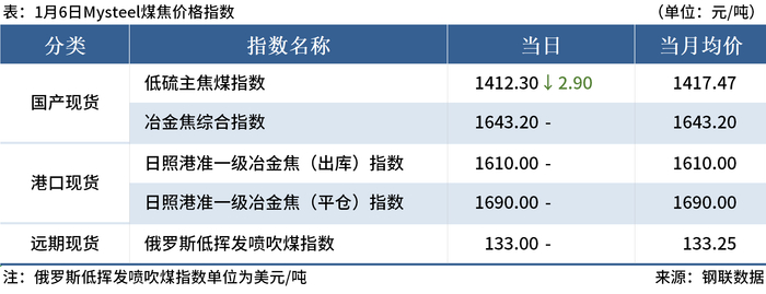 ◎1月6日,焦炭开启第六轮提降。其中,邢台、天津、唐山等部分钢厂对湿熄焦炭下调50元/吨、干熄焦炭下调55元/吨,1月8日零点执行。