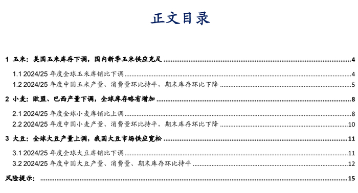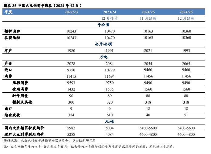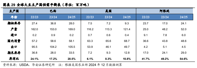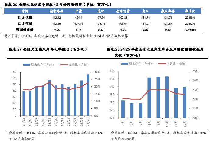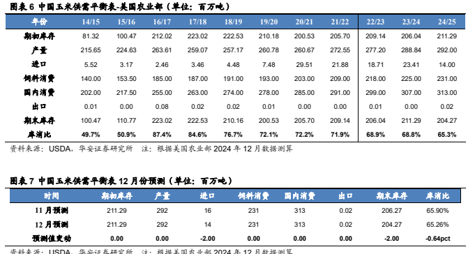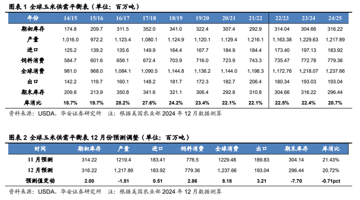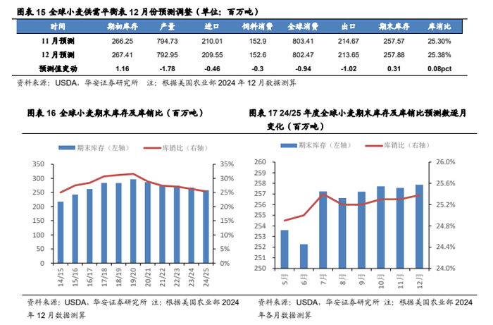 本报告摘自华安证券2025年1月3日已发布的《【华安证券·农林牧渔】行业专题:农产品行业系列报告一:12月USDA下调全球玉米、小麦产量,上调大豆产量》,具体分析内容请详见报告。若因对报告的摘编等产生歧义,应以报告发布当日的完整内容为准。