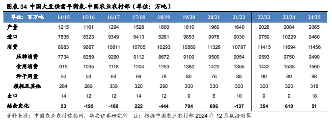 3.2 2024/25 年度中国大豆产量、消费量、期末库存环比持平