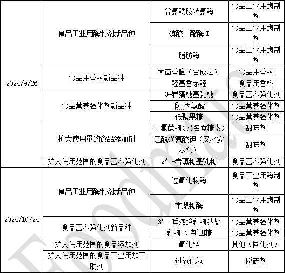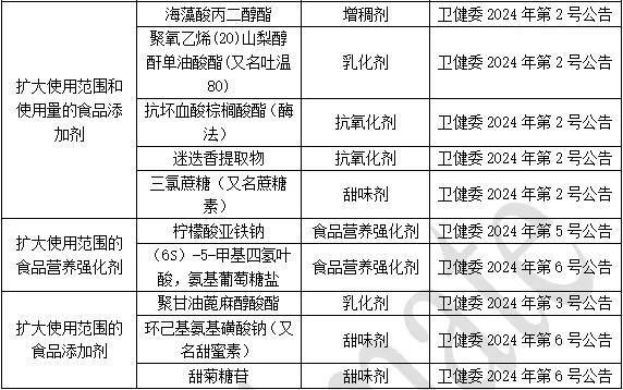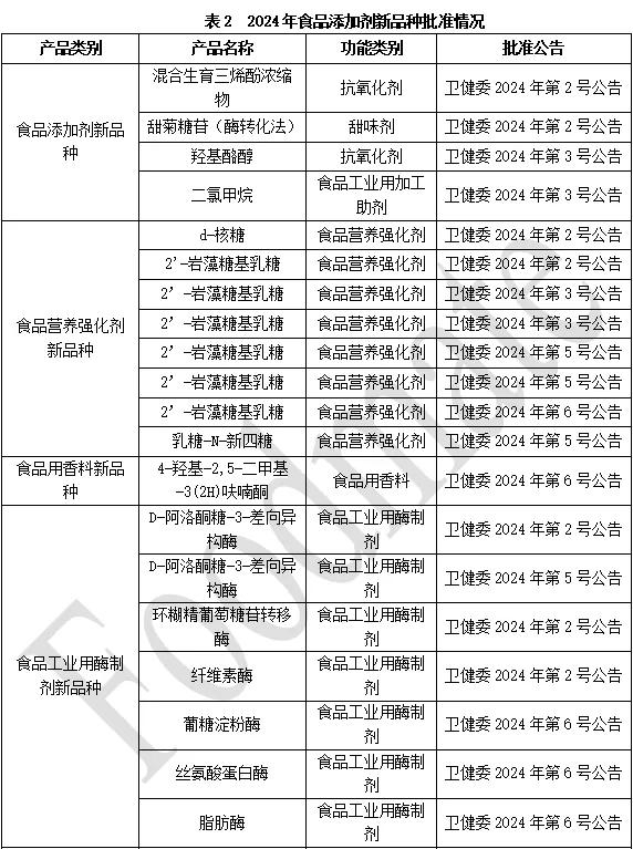 2024年批准的食品添加剂新品种情况