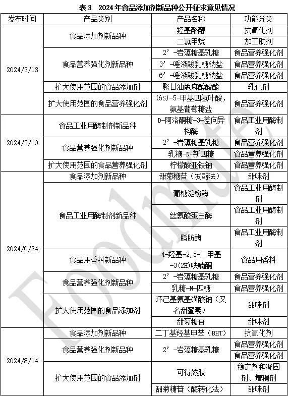 2024年食品添加剂新品种公开征求意见情况