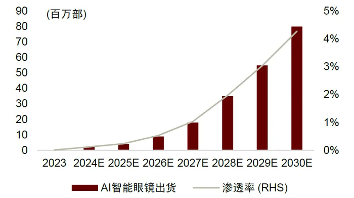 图表3:AI眼镜出货量及渗透率