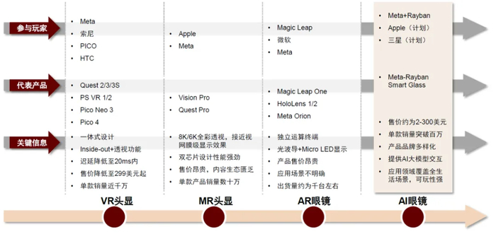 ARVR历经多款产品形态打磨,智能眼镜或为最优解。自2010年起,市场对ARVR关注度持续提升,并有苹果、微软、Meta、三星、Google和字节等科技大厂入局,以及Magic Leap、Xreal和Rokid等初创公司崛起。我们认为产品形态历经多轮更迭及功能创新,目前ARVR产品形态的成功范式已较为明晰,我们看好智能眼镜有望推动ARVR行业加速发展。