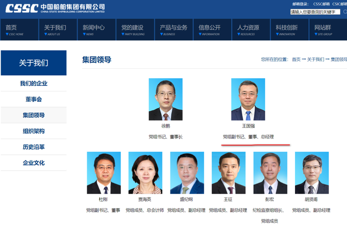 2025年1月6日,中国船舶集团官网更新的信息显示,王国强已任集团党组副书记、董事、总经理。该职位此前由杨金成担任,在其于2023年12月卸任后,便空缺至今。