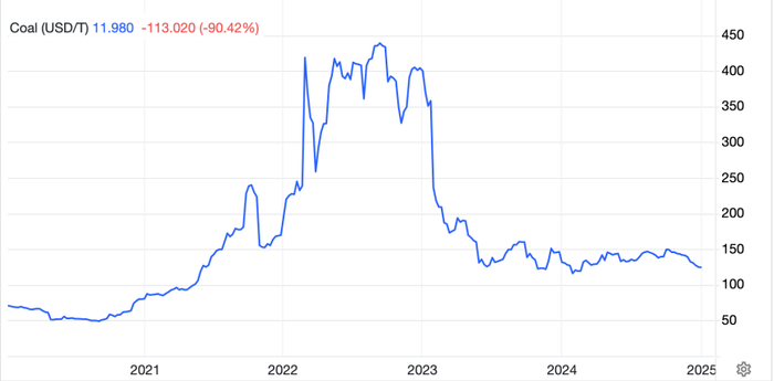 有意思的是,进口煤炭的价格也在配合煤炭储备体系。据tradingeconomics统计,从2023年以来,纽卡斯尔国际煤价为代表的海外煤价一直处于比较低的水平。