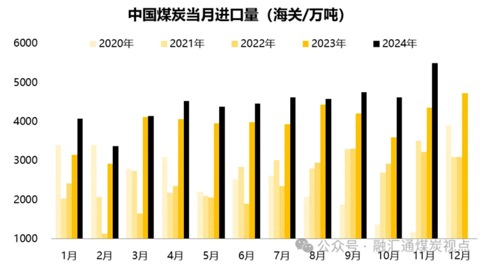 从全年维度看,2024年前11个月,中国累计进口煤炭达到49034.9万吨,同比增加14.8%,远超年初预期。