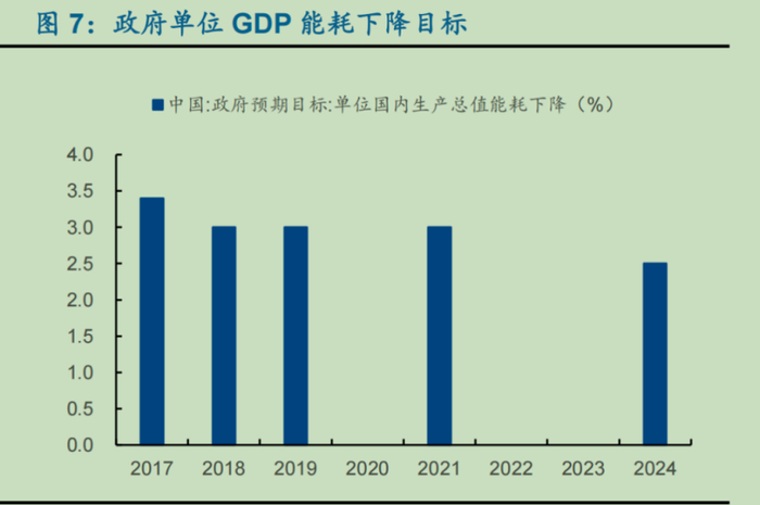 还记得2024年年初,政府工作报告里提出的能耗目标吗?时隔两年,政府再次给出明确的量化目标,单位GDP能耗下降2.5%。前文我们提到,从能源结构的变化看,火电占比时隔11年提高,这意味着目标不容易实现。