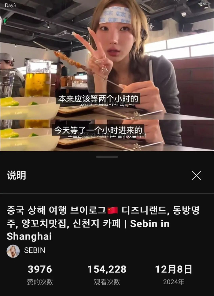 明星效应在免签之后拓展至各大旅游博主,不少韩国博主在自己的“上海旅游”vlog中都将“很久以前羊肉串”作为重要的打卡地。韩流明星和自媒体博主的影响力在韩国年轻人中很大,因此在本轮“China travel”中“很久以前羊肉串”享受到了泼天流量。