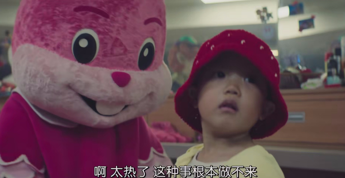 比如这位在游乐园戴着兔子头套逗孩子玩的姐姐: