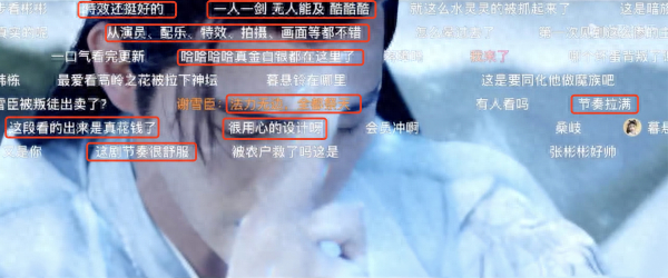 值得一提的是,为了配合全剧的酷炫特效,优酷还在站内创新互动玩法。不仅上线了“桃花朵朵开”自定义字幕和IP专属字幕,还推出了全新“破碎弹幕”。比如第一集谢雪臣使出“玉阙天破”招数时,弹幕会自动触发“破碎弹幕”功能,让用户与角色同屏、同感,带动弹幕用户主动发布破万条弹幕。