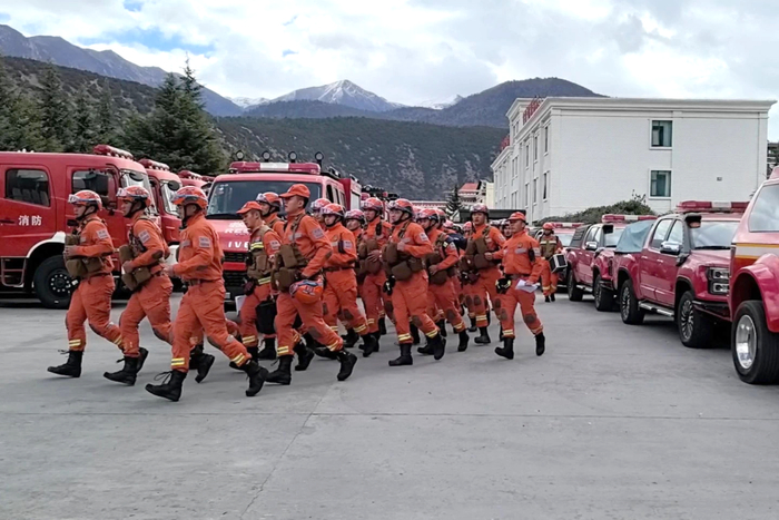西藏林芝市森林消防支队迅速启动应急响应,第一时间对救援行动进行安排部署,按地震救援预案组织人员迅速集结。