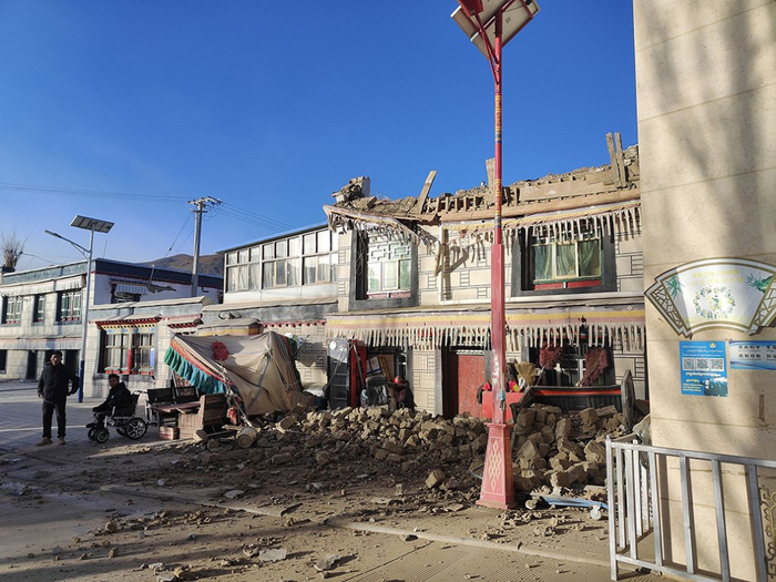 2025年1月7日,西藏日喀则,拉孜县锡钦乡受到地震影响,房屋倒塌。