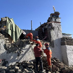 2025年1月7日,西藏日喀则,消防人员在定日县长所乡开展救援。