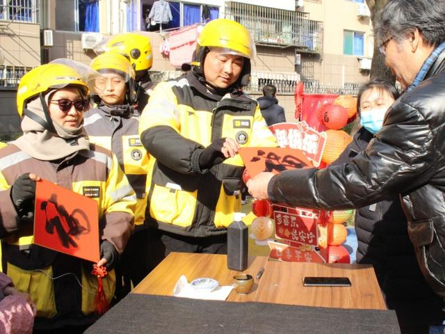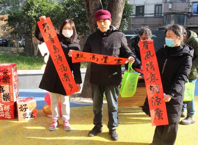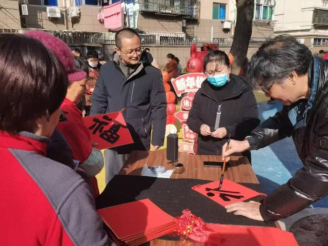 写福字区域同样热闹非凡。辖区达人龚老师挥毫泼墨,一幅幅寓意吉祥的福字跃然纸上。居民们围在一旁,有的帮忙传递纸张,有的在一旁欣赏赞叹。大家纷纷领取写好的福字,希望能把福气带回家。