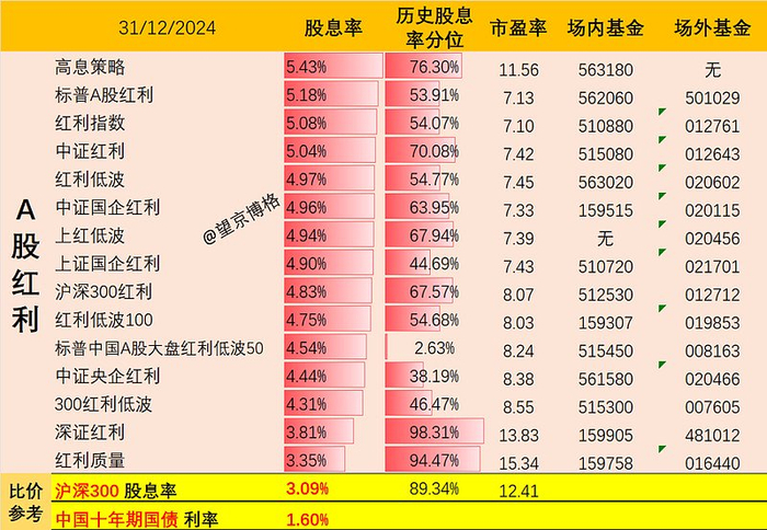 关注望京博格,我们将定期更新红利类指数的股息率。