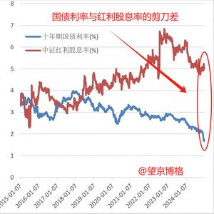 在十年之前,十年期国债利率3.65%,中证红利股息率3.32%,作为稳健投资吃息的当然选国债了,国债不仅派息稳定,而且价格波动不大;相比而言中证红利不仅股息率不及国债,还要面临市场的波动。所以也就没人待见红利资产。