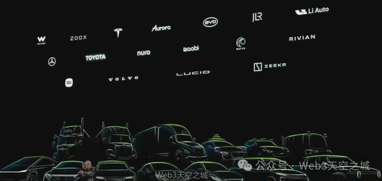 我们几乎与全球所有主要的汽车公司都有合作,包括Waymo、Zooks和特斯拉的数据中心,比亚迪(全球最大的电动汽车公司),以及即将推出新款配备英伟达技术的捷豹路虎汽车,梅赛德斯-奔驰今年也将投产配备英伟达技术的汽车车队。我很高兴地宣布,丰田和英伟达今天将携手合作,共同打造下一代自动驾驶汽车。还有许多优秀公司,例如Lucid、Rivian、小米和沃尔沃等。Wabi正在研发自动驾驶卡车,我们本周还宣布Aurora将使用英伟达的技术研发自动驾驶卡车。
