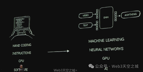 如今,计算的每个层面都发生了革命性的变化,从手工编写在CPU上运行的指令到创建人类使用的软件工具,机器学习可以创建和优化在GPU上运行的神经网络,从而创造人工智能。技术栈的每一层都发生了彻底的改变,仅仅12年就发生了不可思议的转变。