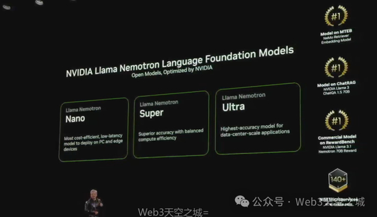 我们发布了一个基于 NVIDIA LLAMA Nemotron 语言基础模型的完整模型家族。LLAMA 3.1 现象级成功,Meta 下载次数约 65 万次,并被衍生出约 6 万个不同的模型,推动了几乎所有企业和行业投入 AI 工作。