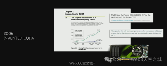六年后,也就是1999年之后,我们发明了CUDA,从而能够向丰富的算法集合展现GPU的可编程性。 最初,CUDA难以解释,这花费了数年时间,大约六年。