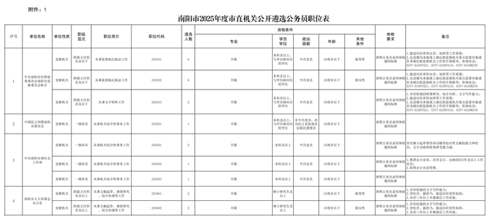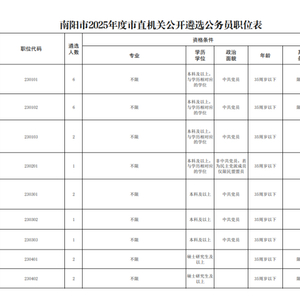 公开遴选职位为一级主任科员以下及相当职级层次职位。市直29个机关共计划遴选公务员71人,各单位遴选人数、具体职位、资格条件等,详见《南阳市2025年度市直机关公开遴选公务员职位表》。