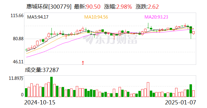 惠城环保(300779.SZ)1月7日在投资者互动平台表示,广东东粤化学科技有限公司20万吨/年混合废塑料资源化综合利用示范项目已按计划建成中交,标志着项目工程建设全面完成,顺利进入生产开工准备阶段。具体项目的进展请关注公司的相关公告或新闻。