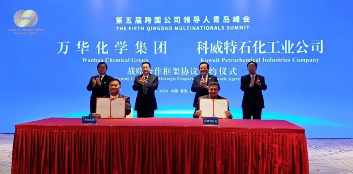 2024年8月27日,青岛举办的跨国公司领导人峰会上,万华化学集团与科威特石化工业公司共同签署了《战略合作框架协议》。此次合作是在烟台市市委副书记、市长郑德雁的见证下达成的,对烟台乃至山东的石化产业都是一次重要的赋能升级。