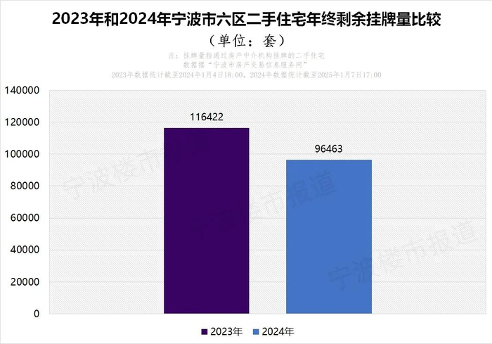 与2023年年末比,2024年末市区二手住房挂牌量少了约2万套,降幅约17%。