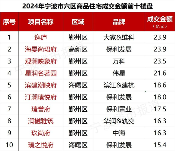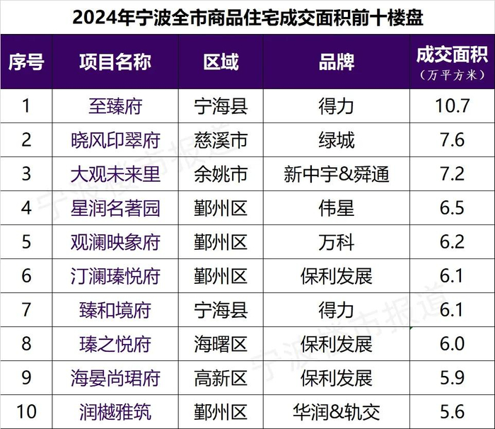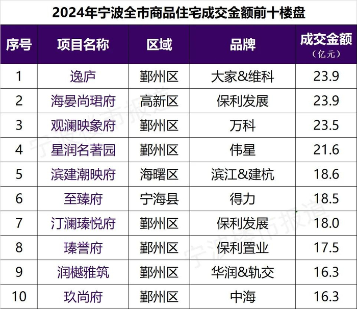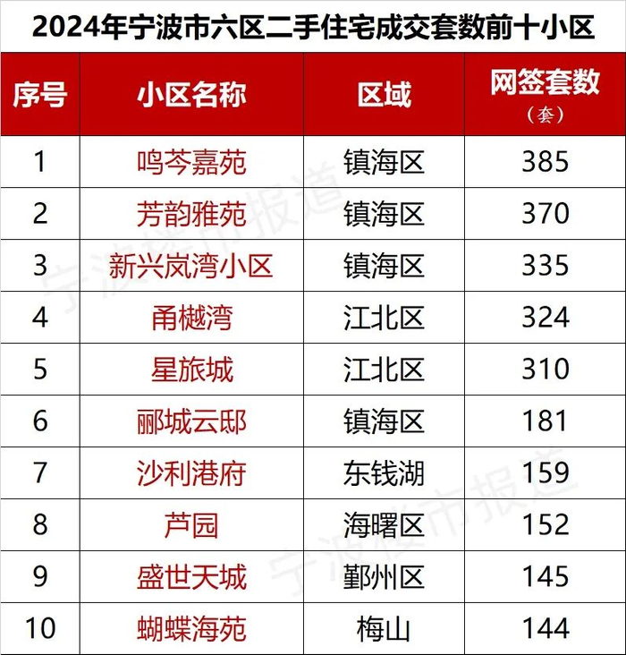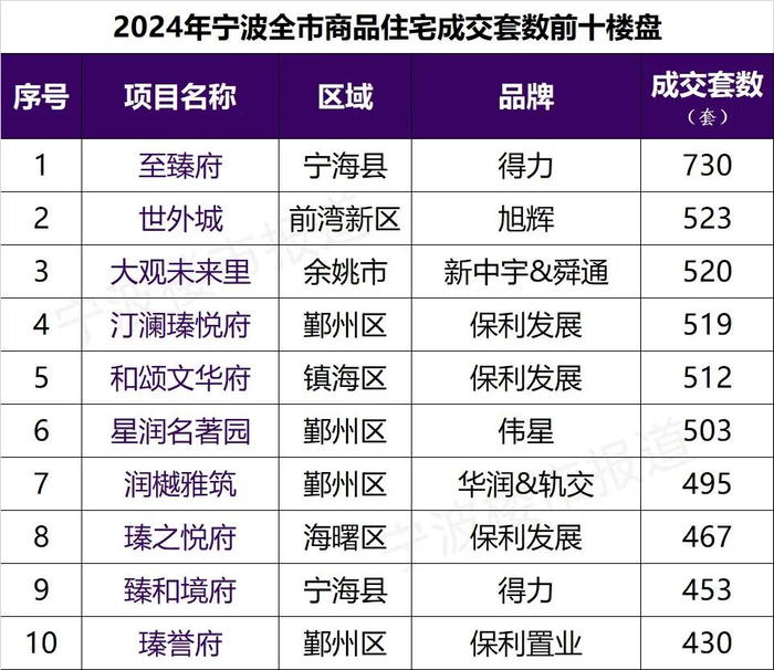 官方数据!2024年宁波楼市情况如何?成交最多的10个小区是…