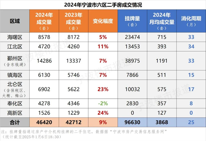 如果以被称作“楼市风向标”的二手房市场的成交数据作为观察点,2024年,可以说是宁波楼市深度调整三年半来,表现最好的一年!