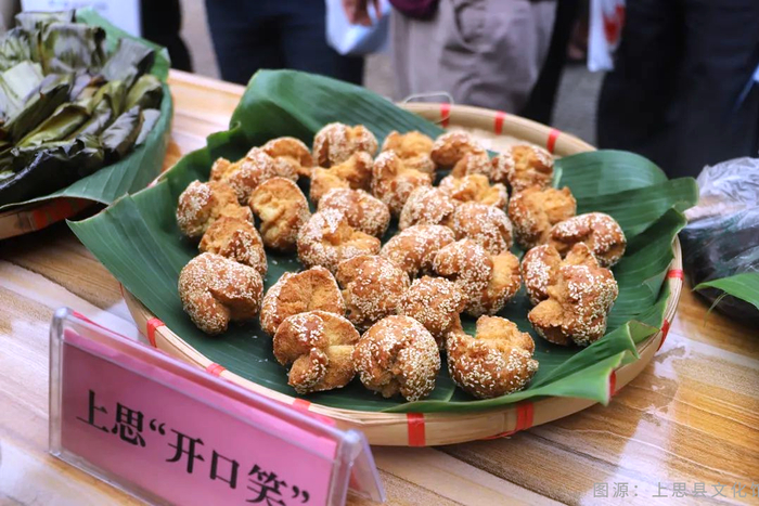 开口笑也是防城港人过年时必备的小吃之一,因其面团在高温油炸后自然裂开,形似咧开欢笑的嘴巴,故而得名。开口笑除了味美之外,还是一种喜庆、吉祥的象征,在新年时吃寓意更好,预示着新的一年开开心心。