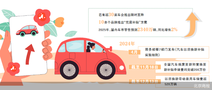 据乘联分会预测,今年国内车市零售将达2340万辆,同比增长2%。同时,去年国家“以旧换新”及各地“置换更新”政策持续释放汽车消费需求。据商务部统计,截至去年11月18日,全国汽车报废更新和置换更新补贴申请量均突破200万份,合计超400万份。同时,截至去年12月13日零时,以旧换新带动乘用车销量超520万辆。
