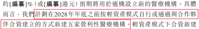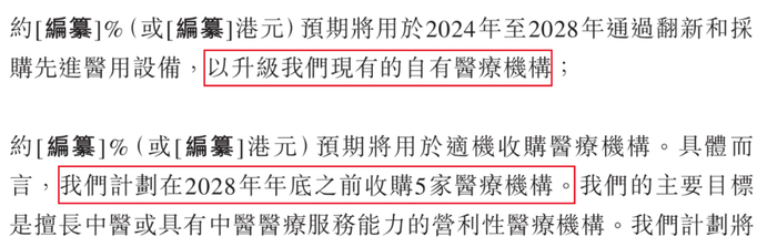 在招股书中,同仁堂医养提及未来的扩张计划,计划在2028年年底之前收购5家医疗机构、按轻资产模式自行或通过与合作伙伴合资建立的方式新建5家营利性医疗机构,对现有的自有医疗机构进行升级。