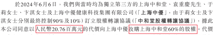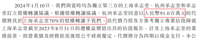 2024年1月,公司收购上海承志堂70%股权,耗资9100万元;同年6月,公司又以2076万元收购上海中和堂60%股权,以强化公司于长江三角洲的业务布局。