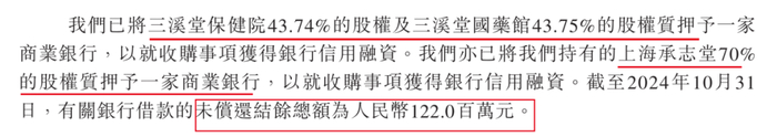 截至2024年10月31日,有关银行借款的未偿还总额为1.22亿元。此次IPO,同仁堂医养对募集资金的用途之一,就是偿还银行贷款。