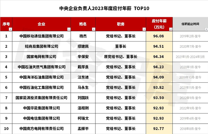 中央企业一把手的年薪能达到多少?作者为大家梳理总结了央企一把手2023年应付年薪。