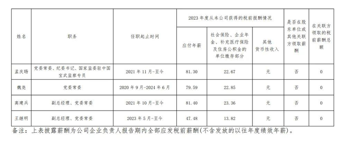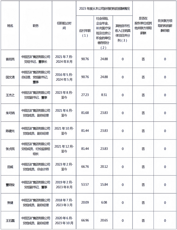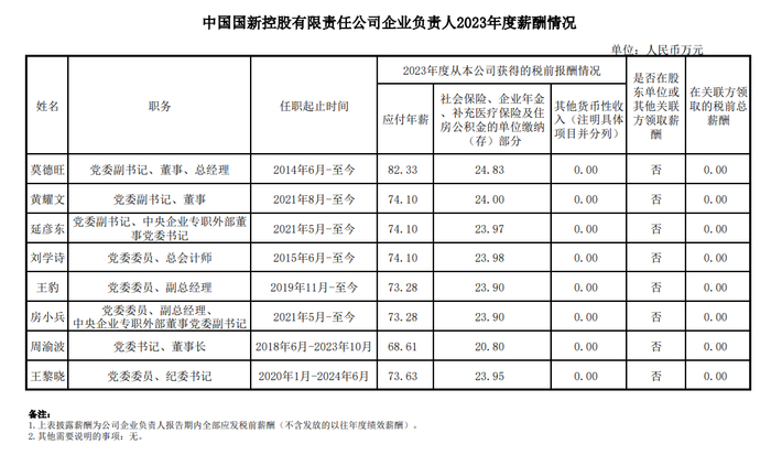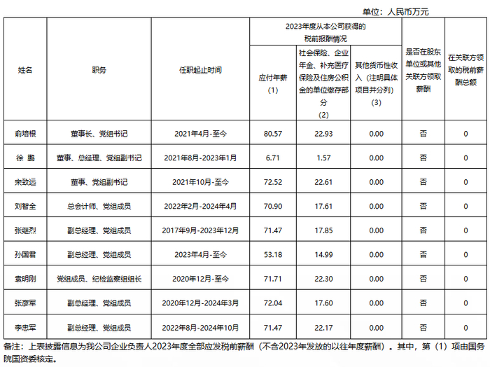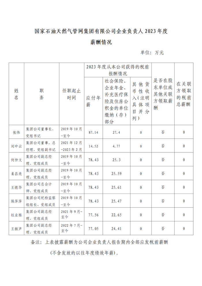 据国资委考核分配局资料,中央企业负责人薪酬收入由三个部分组成,税前薪酬=应付薪酬+社会保险、企业年金、补充医疗保险及住房公积金的单位缴存部分+其他货币收入如补贴,其中,应付年薪由国资委核定。