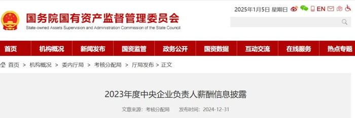 2024年12月31日,国务院国资委网站发布2023年度中央企业负责人薪酬披露。97家央企分别在企业官网公布了负责人年薪收入情况。
