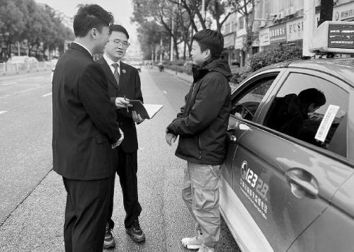 检察官对出租车司机进行走访调研。