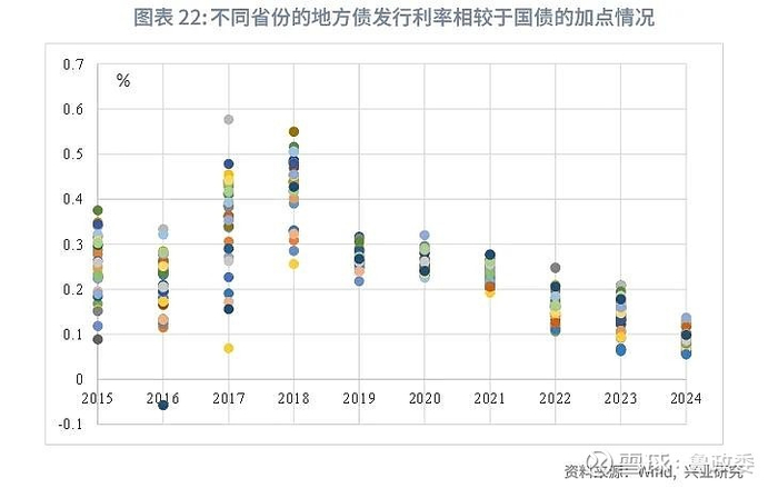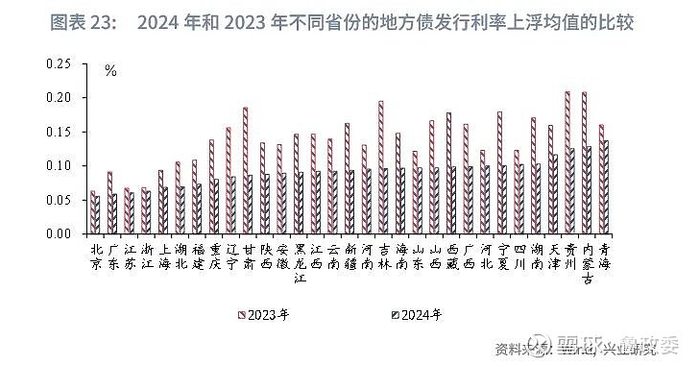 2024年,地方债发行定价的平均加点幅度继续下行。从各地区平均加点幅度来看,2024年,平均加点幅度为9bp,较2023年下降5bp;最高加点为14bp,较2023年下降7bp;最低加点为6bp,和2023年持平,区域间发行定价差异较2023年收窄。