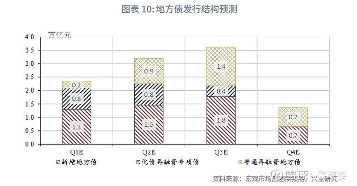从第一季度规模来看,政府债发行规模可能达到5.1万亿元,净融资规模3.2万亿元。其中,国债发行规模2.8万亿元,净融资规模1.1万亿元;地方债发行规模2.3万亿元,净融资规模为2.1万亿元。