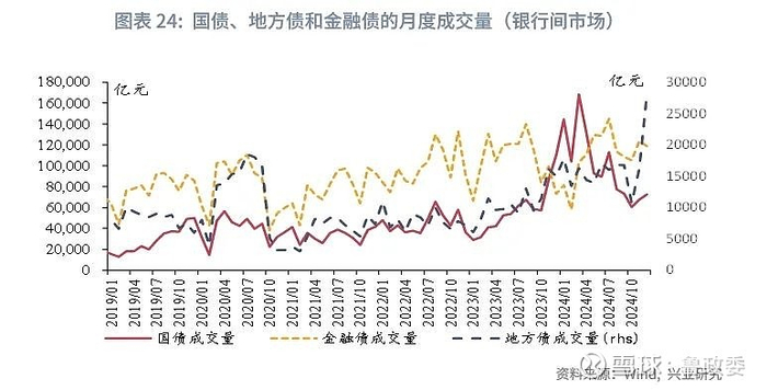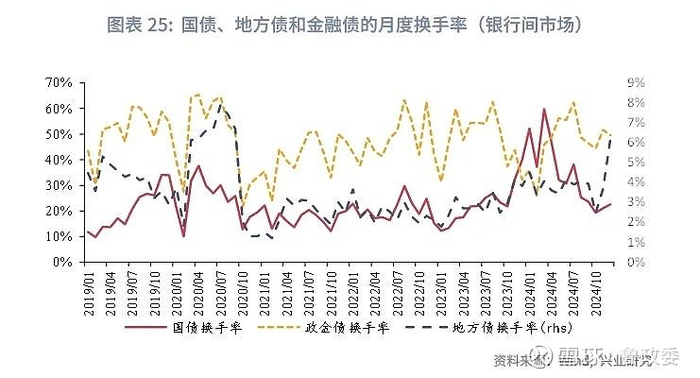 从地方债的二级市场交易活跃度来看,2024年12月,地方债的成交量创历史新高,换手率处于历史较高水平。2024年第四季度,地方债交易较为活跃,尤其是12月的成交量达到接近2.7万亿元,创历史新高;从换手率来看,2024年第四季度,地方债换手率处于2%以上,2024年12月达到6.8%,处于历史较高水平。