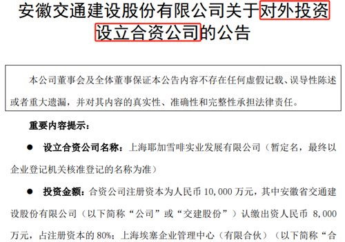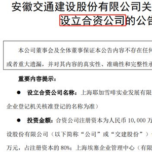 交建股份同时提醒,新设合资公司所从事业务属于公司拓展的新业务,受政策变化、市场竞争、生产经营管理经验等因素影响,能否按计划投入运营存在一定的不确定性。另外,合资公司设立后,在未来实际运营中,可能面临国际咖啡供求关系变化、国内外经济形势、市场竞争、生产经营管理等方面的风险,导致投资收益存在不确定性。