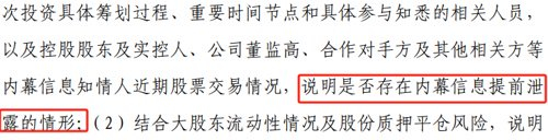 最后,本次公告披露前公司股价涨幅较大,交建股份实际控制人及其一致行动人所持公司股份约60.82%被质押。上交所要求公司补充披露:本次投资具体筹划过程、重要时间节点和具体参与知悉的相关人员,以及控股股东及实控人、公司董监高、合作对手方及其他相关方等内幕信息知情人近期股票交易情况,说明是否存在内幕信息提前泄露的情形;结合大股东流动性情况及股份质押平仓风险,说明是否存在借对外投资事项炒作股价的情形。