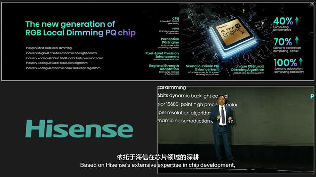 时隔多年,海信依托在芯片领域和AI领域的深耕,终于通过全球首颗RGB光色同控画质芯片和全球领先的高性能RGB-Mini LED 芯片解决了RGB LED在液晶显示中的应用难题。