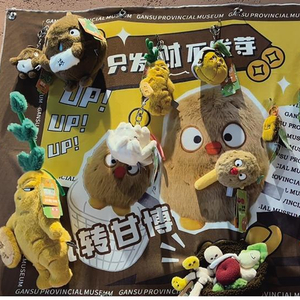 抬眼望去,记者目光立刻被置物架上挂着的甘肃省博物馆铜奔马毛绒玩偶吸引,一足踏在一只飞鸟之上,看上去憨态可掬;一旁的小黄芪玩偶扭着屁股,表情搞怪。店内穿梭忙碌的服务员们也格外引人注目,她们的发间闪烁着精致的发卡,胸前别着小巧而独特的胸针,这些也都是来自甘肃省博的文创杰作。