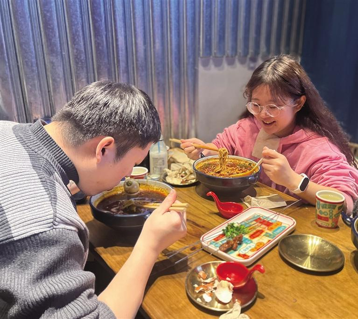 作为一名女性经营者,耿青以更为细致入微的女性视角,打磨产品、提升服务、研究客户。店内大到装修设计,小到餐具摆件,无一不体现女性的慧心与巧思。“我们的餐具都是我花了很长时间淘来的,比如这个牛头造型的碗,大红色的底色让人食欲满满,还有这个翘起来的两个牛角让它看上去很活泼,也刚好作为隔热手柄很实用。”耿青介绍说。